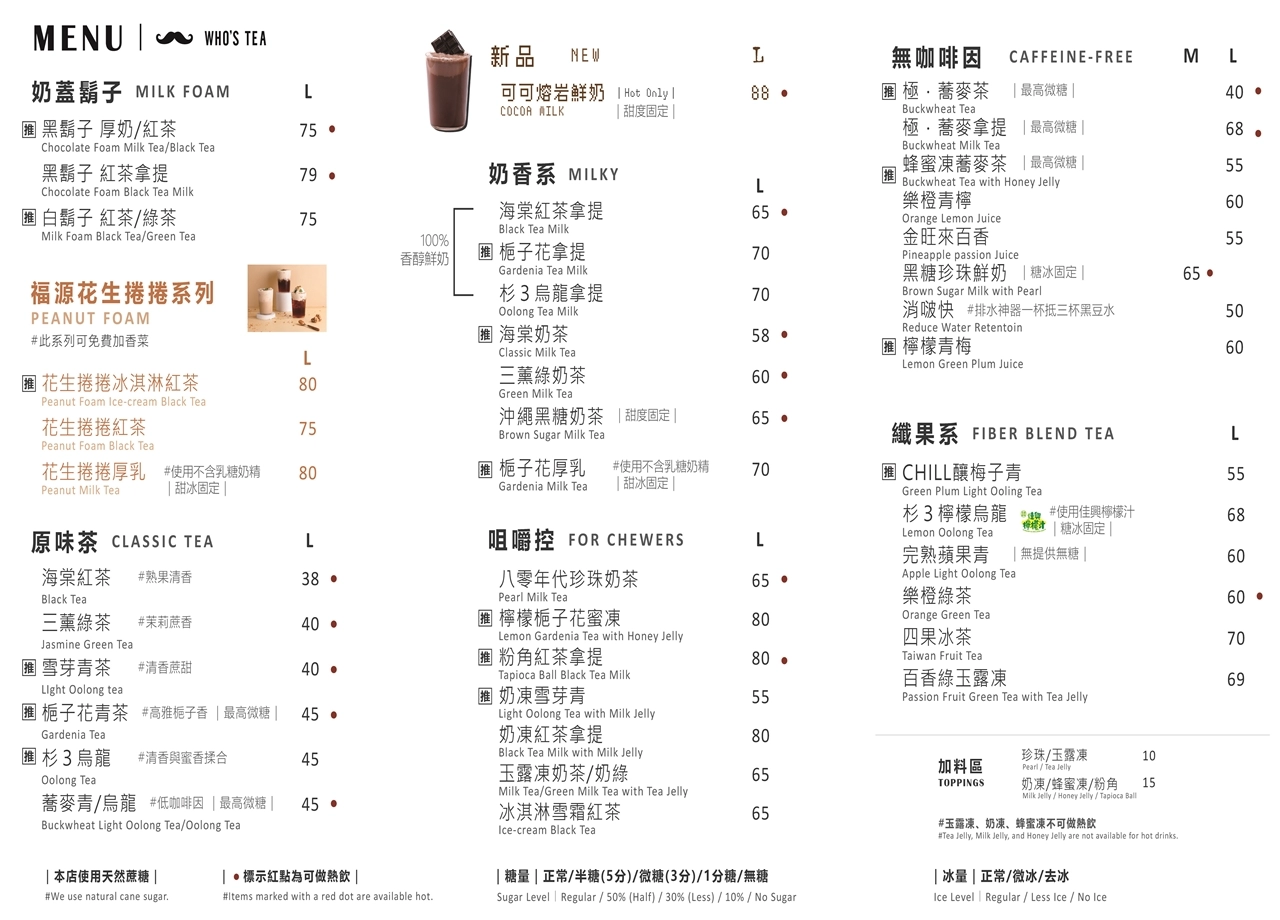 鬍子茶以高品質為核心理念的飲料品牌,嚴選頂級茶葉與新鮮食材,搭配創新手法與細緻工藝,每一杯茶飲都呈現出職人精神與對品質的堅持。鬍子茶不只是解渴的選擇,更是一種生活的品味與態度。從經典原茶到創意特調,無論是哪一種風味,鬍子茶都讓人感受到「簡單,但不平凡」的魅力。